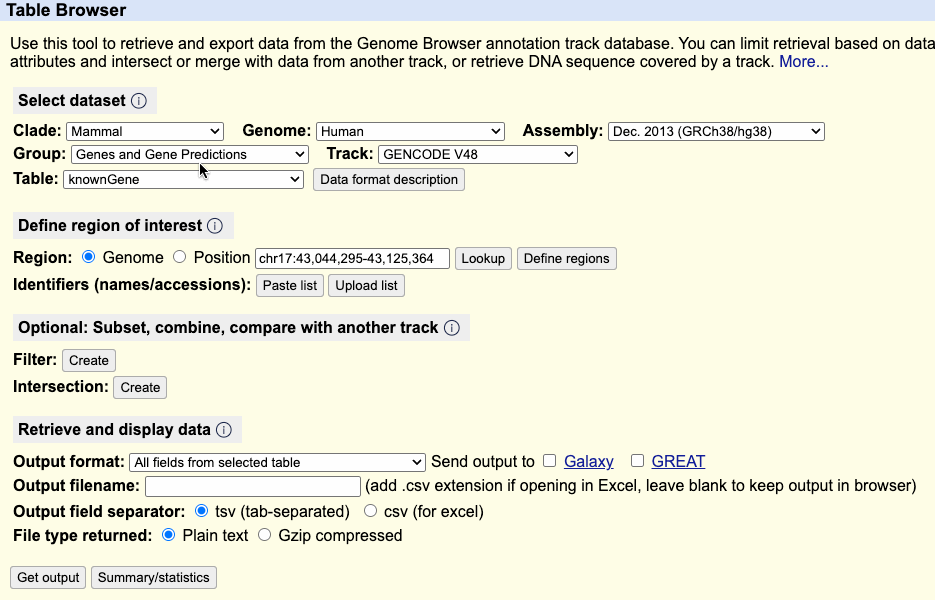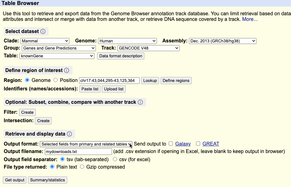 chr7:117199645-117356025)Use the Output format dropdown to choose what type of file or fields you want returned.