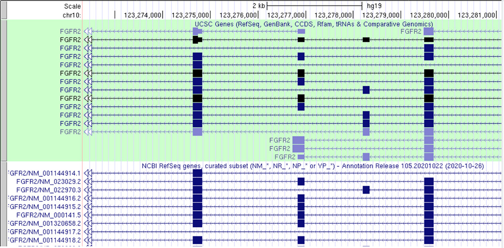 Figure 1. FGFR2 on the "UCSC Genes" (green background)